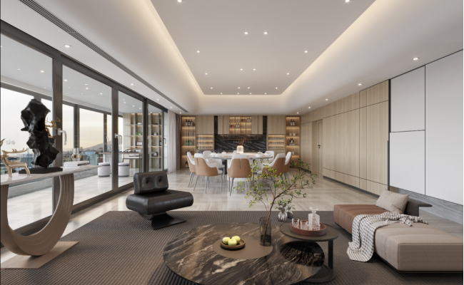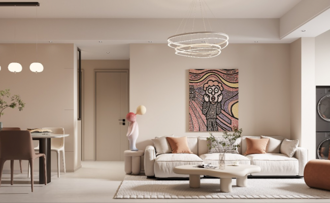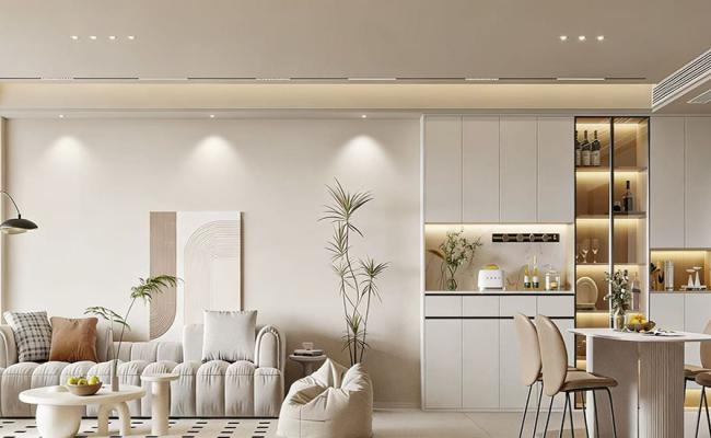 本設(shè)計(jì)以現(xiàn)代簡(jiǎn)約為核心風(fēng)格,融合奶油風(fēng)的溫柔質(zhì)感與輕奢元素的精致細(xì)節(jié),打造客餐廚一體化的通透居住空間,兼顧美學(xué)與實(shí)用功能。