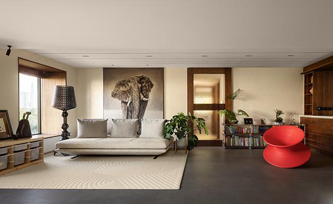 得益于房子自帶的院子,可以將陽臺納入客廳使用,切整體采光很好。所以墻面上多使用護墻板等裝飾面,給客戶一個個性、奢華的家。