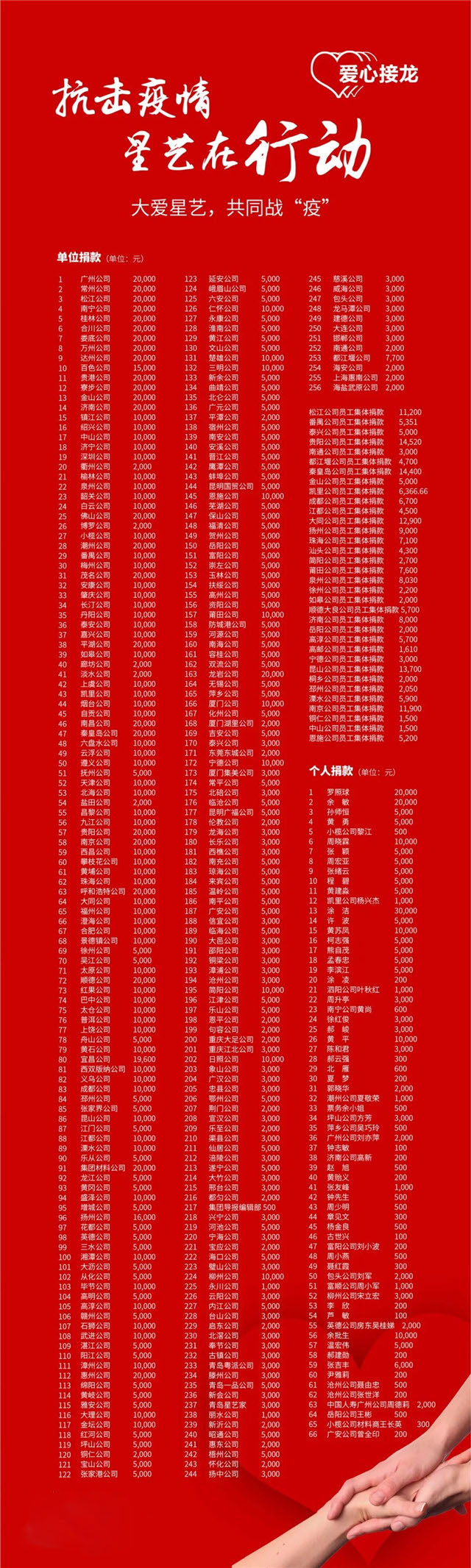 截至目前,2020+星藝客戶(hù)為愛(ài)“接龍”……