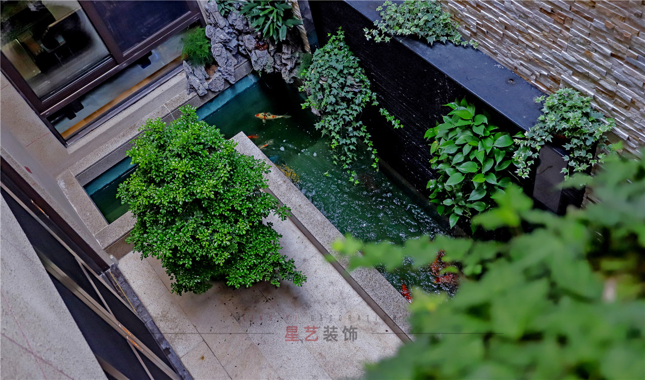 大片的綠植映入眼簾,各種小魚在清澈的水中雀躍遨游的,在假山的襯托下,這個(gè)小角落格外的清新優(yōu)美,閑時(shí)賞魚賞美景,飯后在小花園跟朋友一起談天說(shuō)地,何嘗不是另一種修生養(yǎng)性。