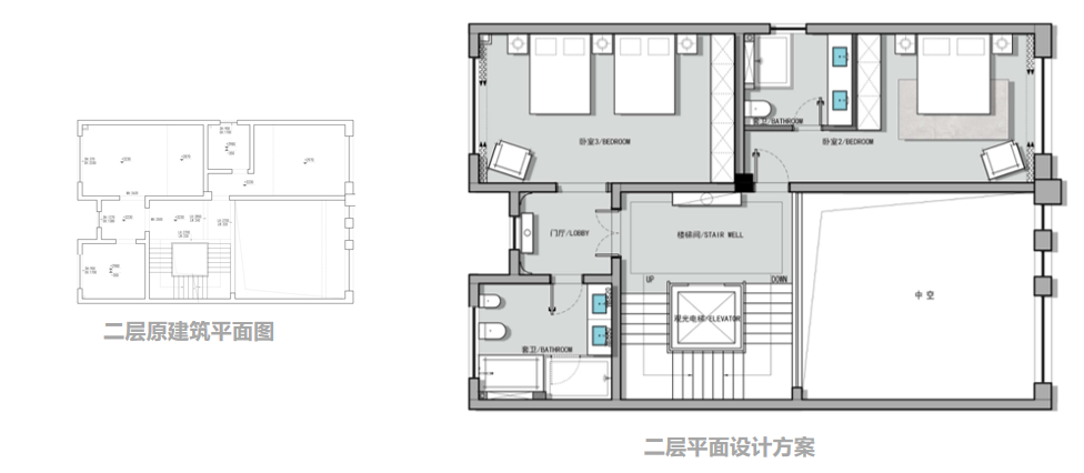 二樓的臥室設(shè)置兩張雙人床,平常可以作為備用臥室,方便有客人或者親戚留宿。