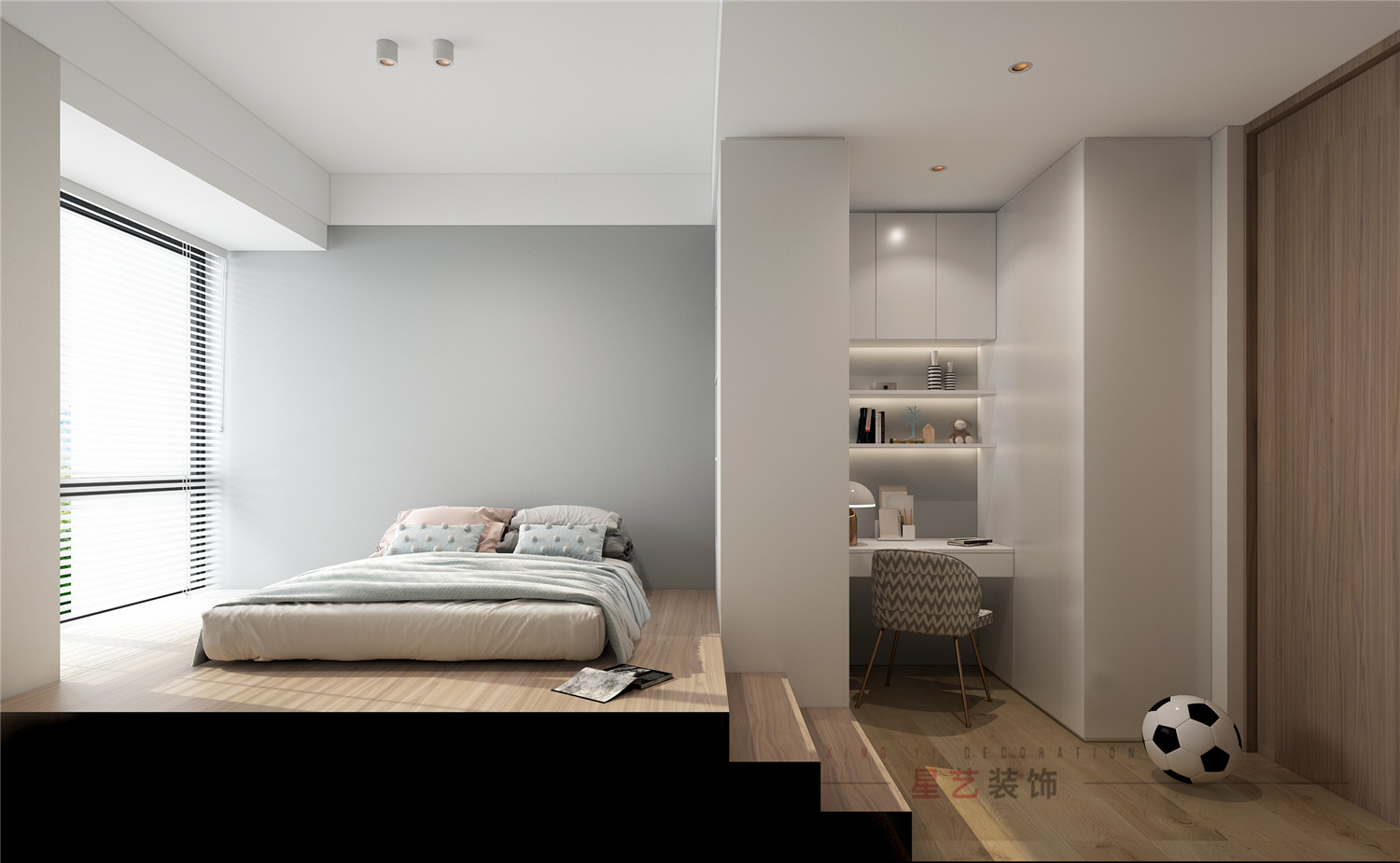 挖空設計出辦公區(qū),并用屏風做隔斷