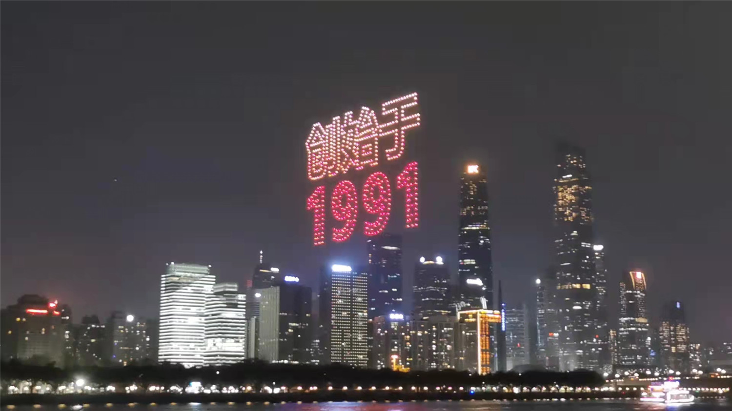 在珠江夜空上秀出璀璨奪目的“星”圖。