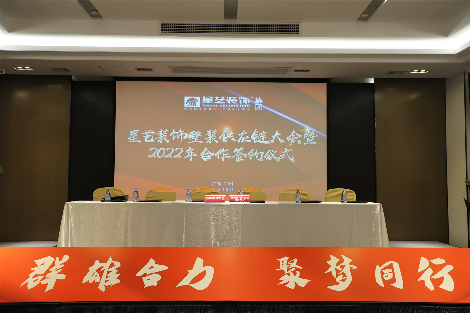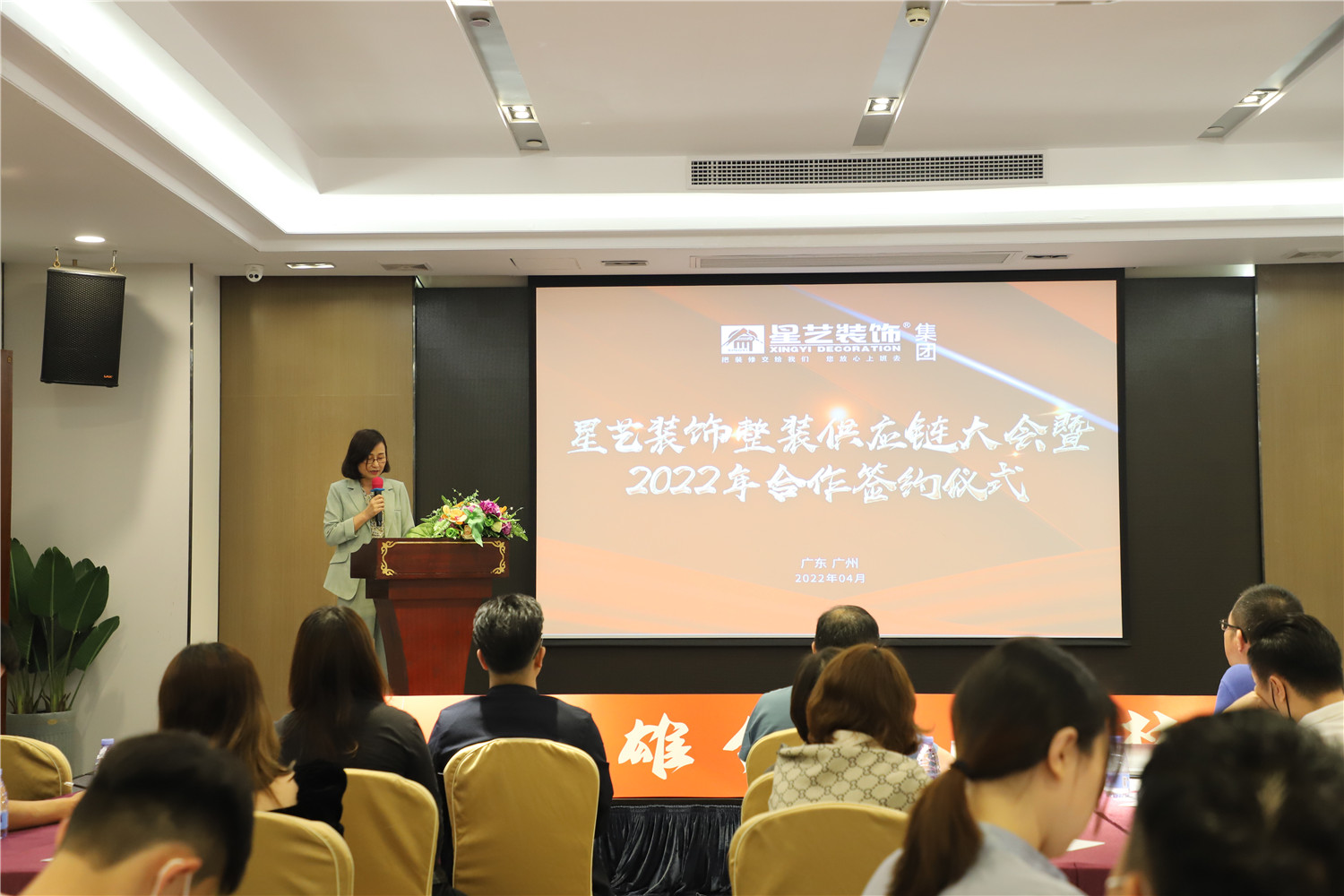 2022年4月27日,星藝裝飾集團廣州分公司隆重舉行星藝裝飾整裝供應鏈大會。“群雄合力◆聚夢同行”,星藝裝飾始終堅信合作共贏是企業生存、發展的最高智慧,如今的累累碩果更離不開每位合作供應商的高度信賴與鼎力支持。