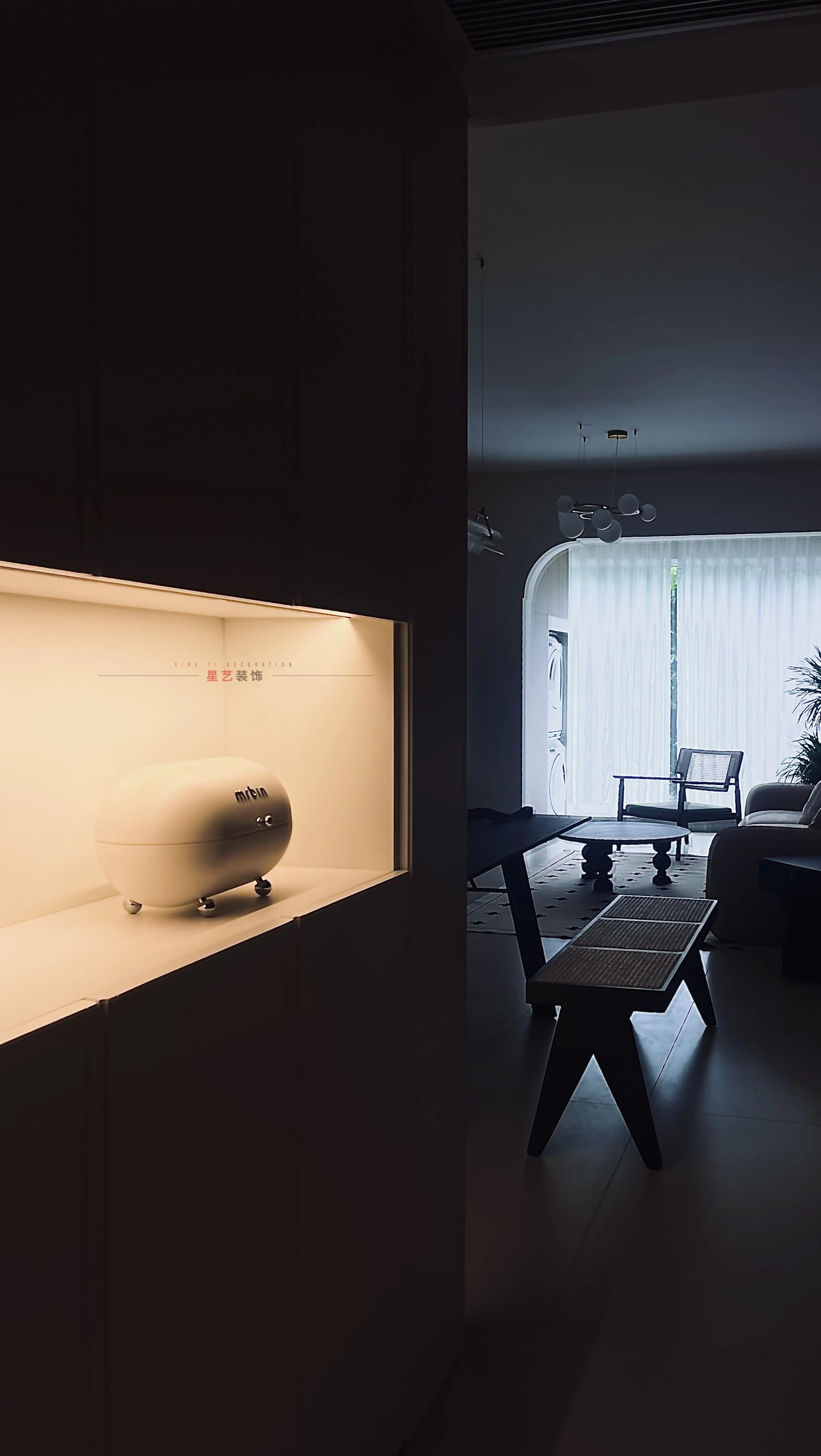 玄關(guān)柜上暖黃色的燈,與窗外模糊的暮色形成對比,這是一天最溫柔的時刻,光讓生活浮起來了。