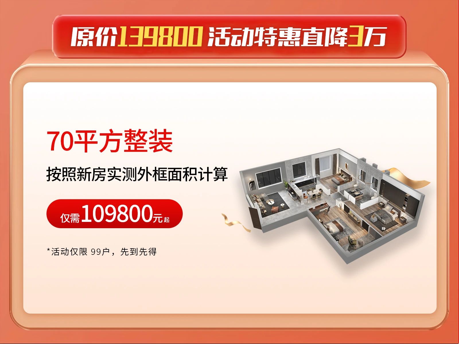 外框70㎡整裝原價139800元,活動限時搶購,直降30000元!