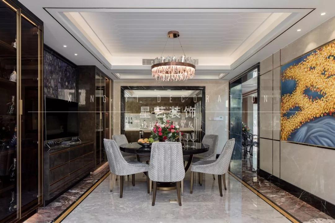 本次案例為港式輕奢風(fēng)格,。越尊貴的居所,越需要多元的休閑區(qū)來滿足社交需求,所以設(shè)計(jì)師以“自然&藝術(shù)”為主題構(gòu)思設(shè)計(jì),最大限度地優(yōu)化建筑平面拓展空間,讓室內(nèi)空間尺度闊綽從容,形成豐富而遞進(jìn)的空間場景。