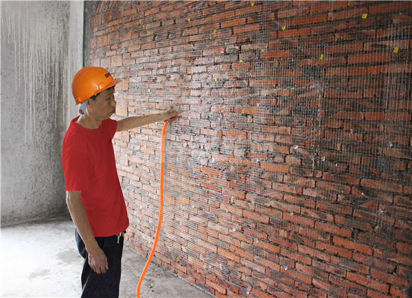 墻體500mm伸入墻體部分用植筋膠固定,增強墻體的新老墻交接處的穩定性能。